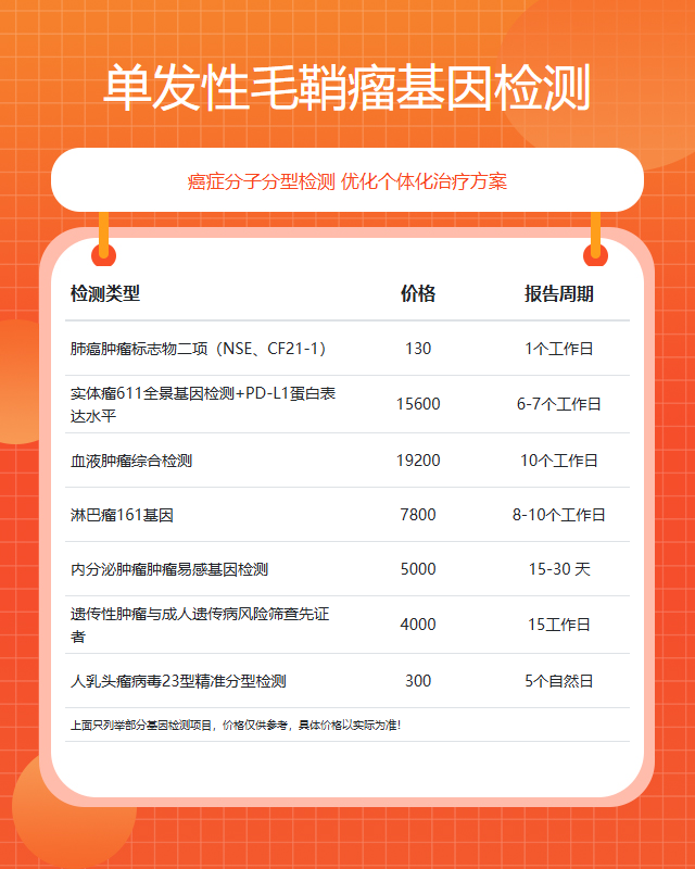 总的来说,佛山单发性毛鞘瘤基因检测的费用没有统一标准,需根据个人需求和实际情况进行选择。建议患者在选择前多方比较,优先考虑具备资质和技术实力的专业机构。