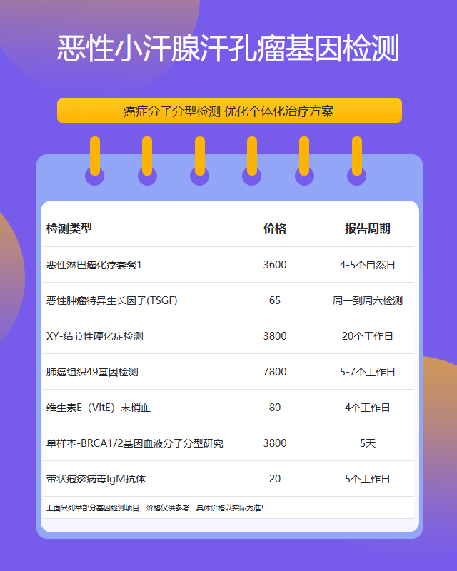 厦门恶性小汗腺汗孔瘤基因检测套餐参考推荐