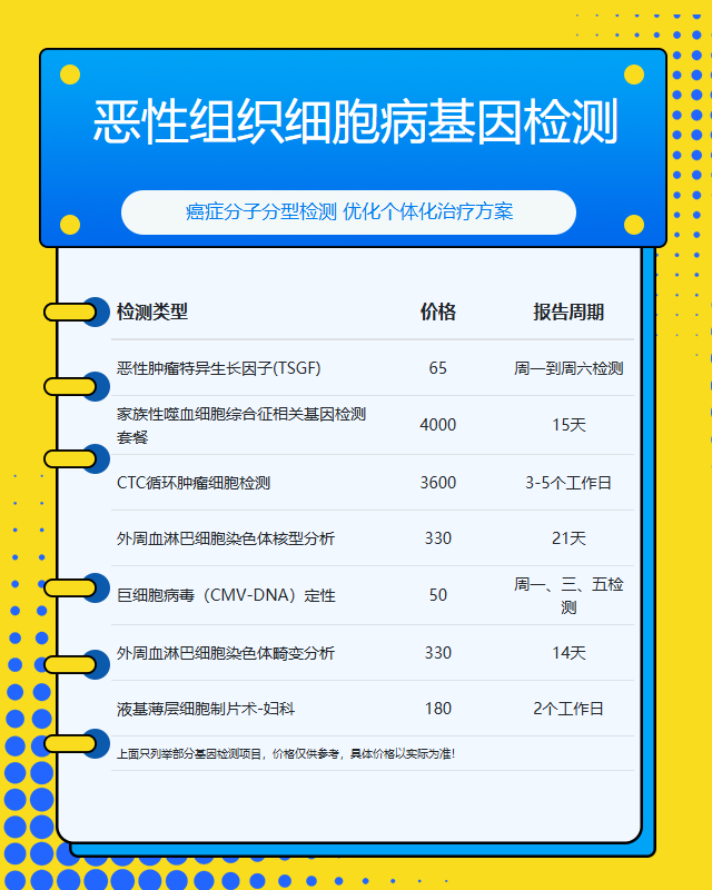 3. 肿瘤基因检测:费用约为3000-8000元。