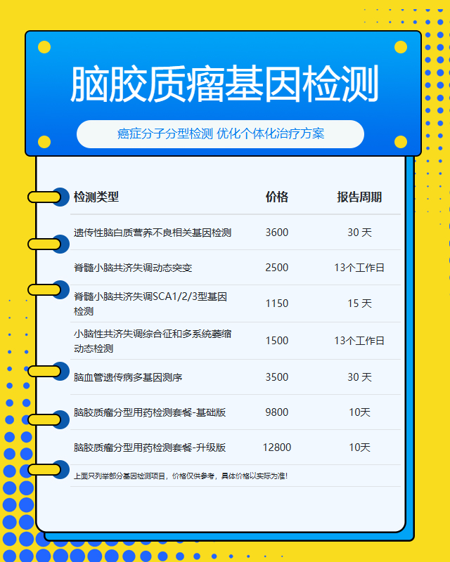 连云港脑胶质瘤基因检测套餐参考推荐