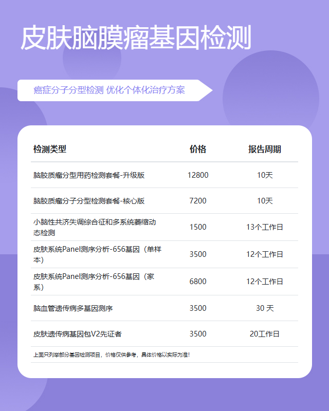 三亚皮肤脑膜瘤基因检测套餐参考推荐