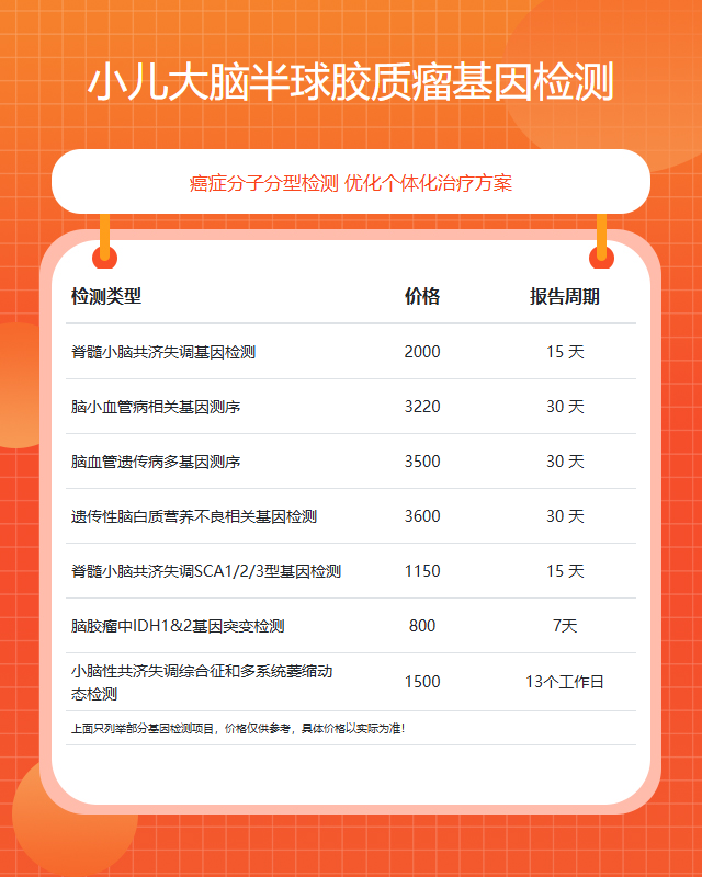 济宁小儿大脑半球胶质瘤基因检测套餐参考推荐