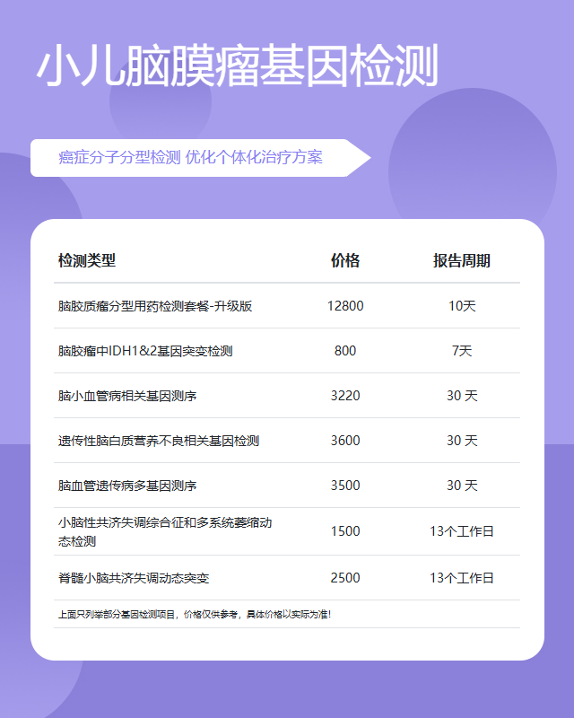 惠州小儿脑膜瘤基因检测套餐参考推荐