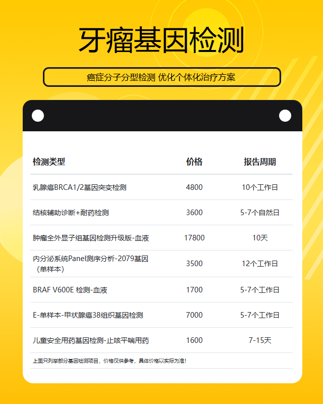 咨询范围:肿瘤基因检测、易感基因检测、单基因检测、安全用药基因检测、妇幼专项基因检测、染色体异常基因检测、遗传疾病基因检测、全外显子基因检测、癌症基因检测等,提供#牙瘤# #皮内上皮癌# #肠系膜肿瘤# #大肠血管瘤# #第三脑室肿瘤# #间皮瘤# #肾肿瘤# #腹膜后脂肪瘤# #宫颈浸润癌# #眶内纤维组织细胞瘤# #老年人霍奇金淋巴瘤# #卵巢卵黄囊瘤# #网膜囊肿# #小儿尤因肉瘤# #眼眶畸胎瘤# #结节性硬化症#等肿瘤基因检测综合业务咨询服务。