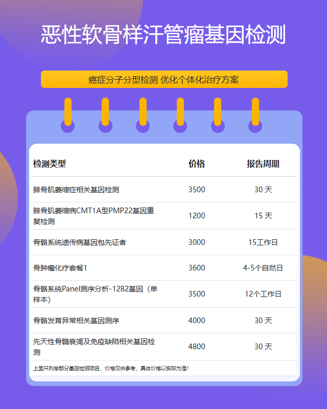六安恶性软骨样汗管瘤基因检测套餐参考推荐