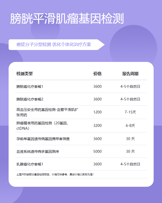 泉州膀胱平滑肌瘤基因检测套餐参考推荐
