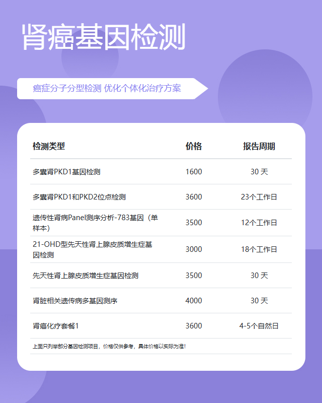 1. 检测基因数量:仅检测VHL等核心基因的费用较低,包含MET、TP53等多基因组合的检测成本更高