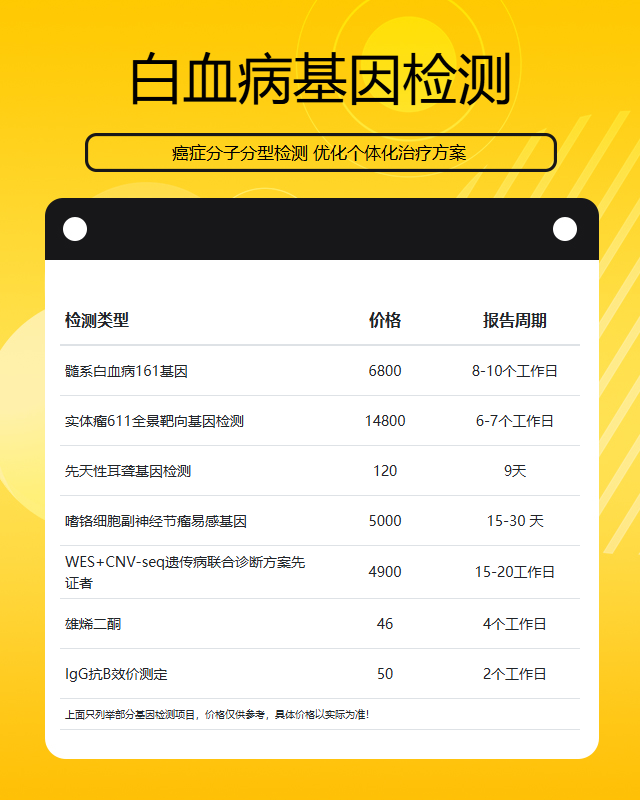 邯郸白血病基因检测套餐参考推荐