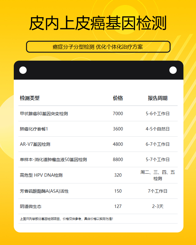 莆田皮内上皮癌基因检测的价格通常在2000元至8000元之间,具体费用因检测项目、技术平台和地区差异而有所不同。基础的单基因检测费用较低,而多基因panel或全外显子测序等高端检测方案价格较高。