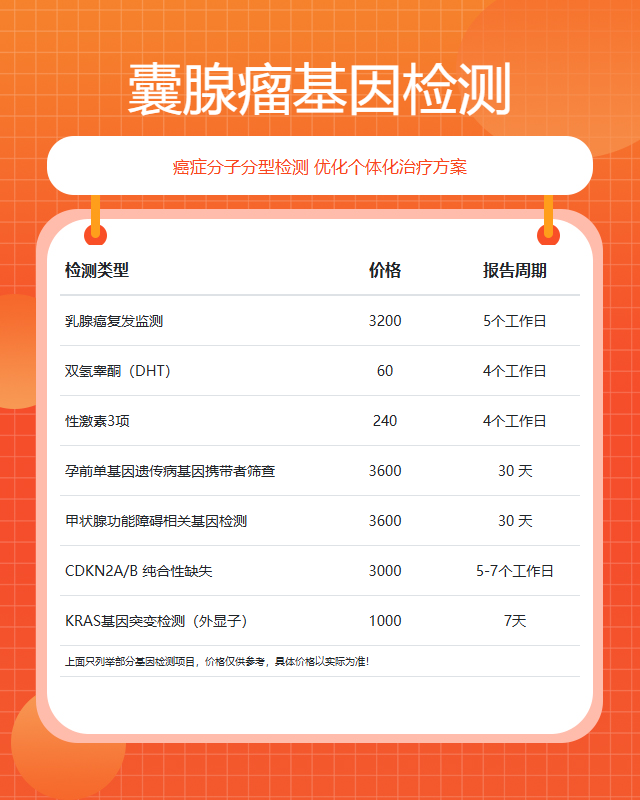 咨询范围:易感基因检测、遗传疾病基因检测、安全用药基因检测、染色体异常基因检测、肿瘤基因检测、全外显子基因检测、单基因检测、妇幼专项基因检测、癌症基因检测等,提供#囊腺瘤# #男性乳腺癌# #小细胞肺癌# #肠癌# #蝶骨嵴脑膜瘤# #肾肿瘤# #肺假性淋巴瘤# #高分化鳞癌# #宫颈上皮内瘤变# #骨膜性软骨肉瘤# #角膜鳞状细胞癌# #上颌窦癌# #髓内肿瘤# #小汗腺汗管纤维腺瘤# #星形细胞瘤# #眼眶骨瘤#等肿瘤基因检测综合业务咨询服务。
