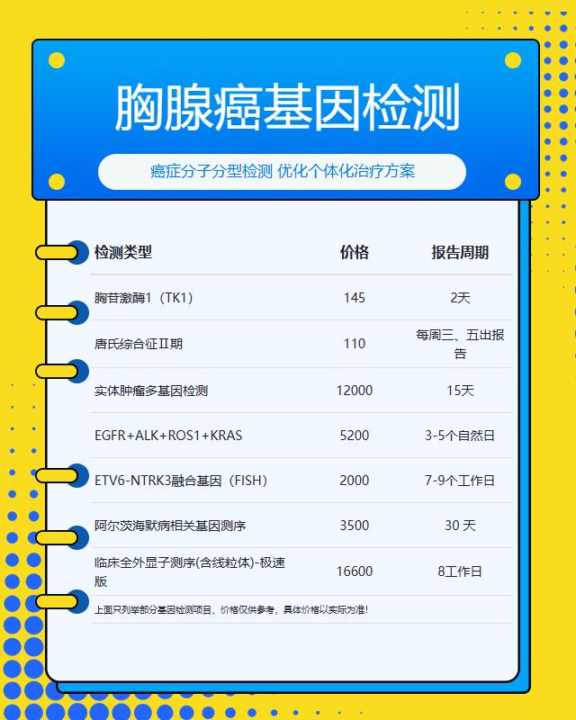 潍坊胸腺癌基因检测套餐参考推荐