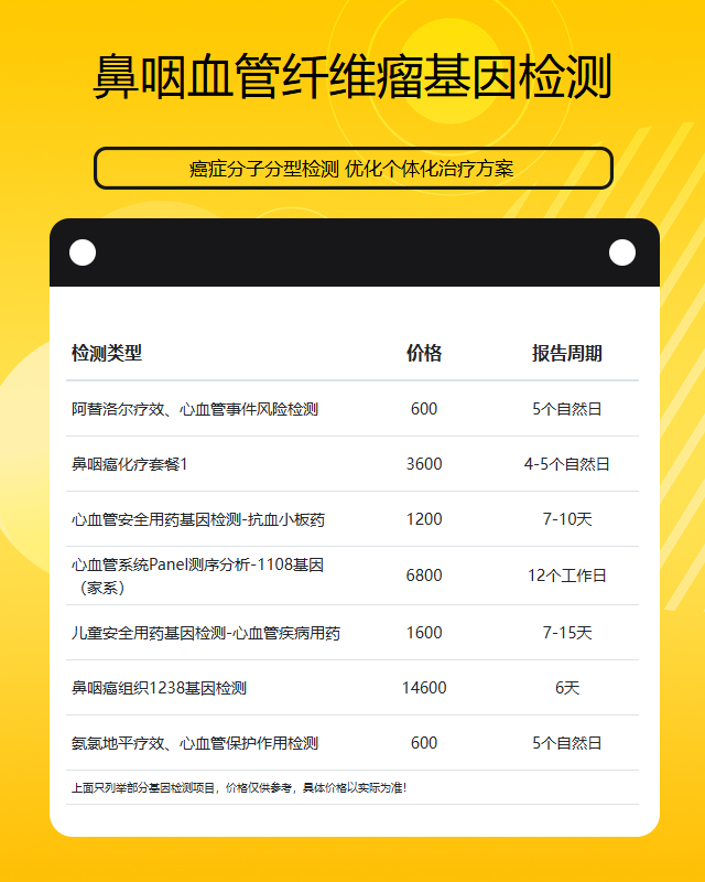常州鼻咽血管纤维瘤基因检测套餐参考推荐