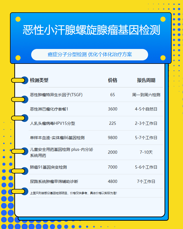 盐城恶性小汗腺螺旋腺瘤基因检测套餐参考推荐