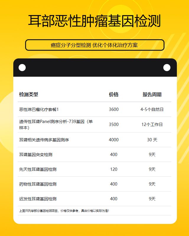 兰州耳部恶性肿瘤基因检测套餐参考推荐