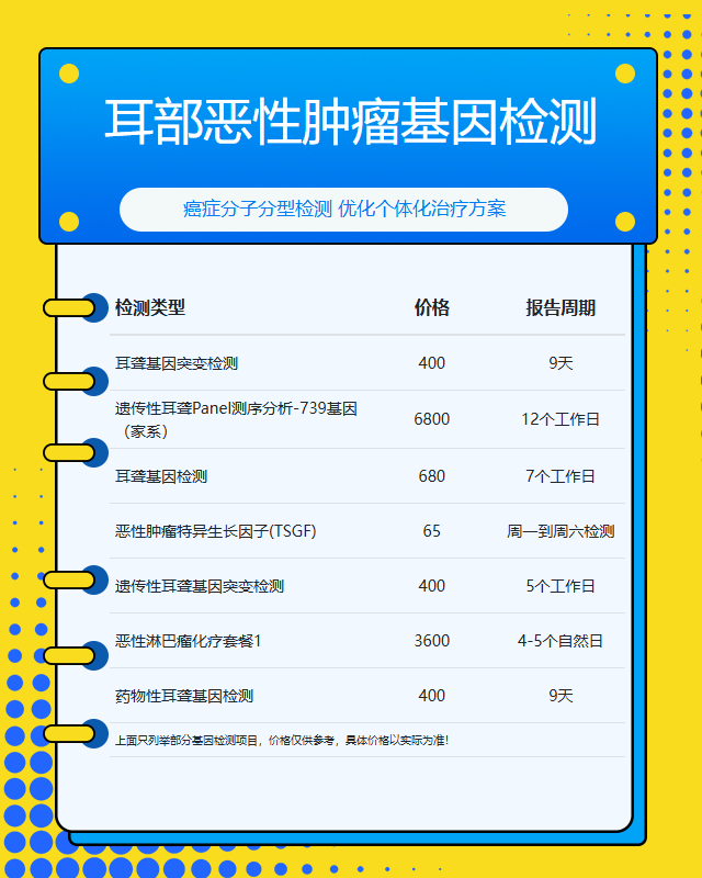 福州耳部恶性肿瘤基因检测套餐参考推荐