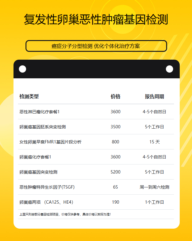 淮安复发性卵巢恶性肿瘤基因检测套餐参考推荐