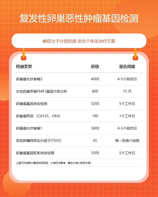 邯郸复发性卵巢恶性肿瘤基因检测套餐参考推荐