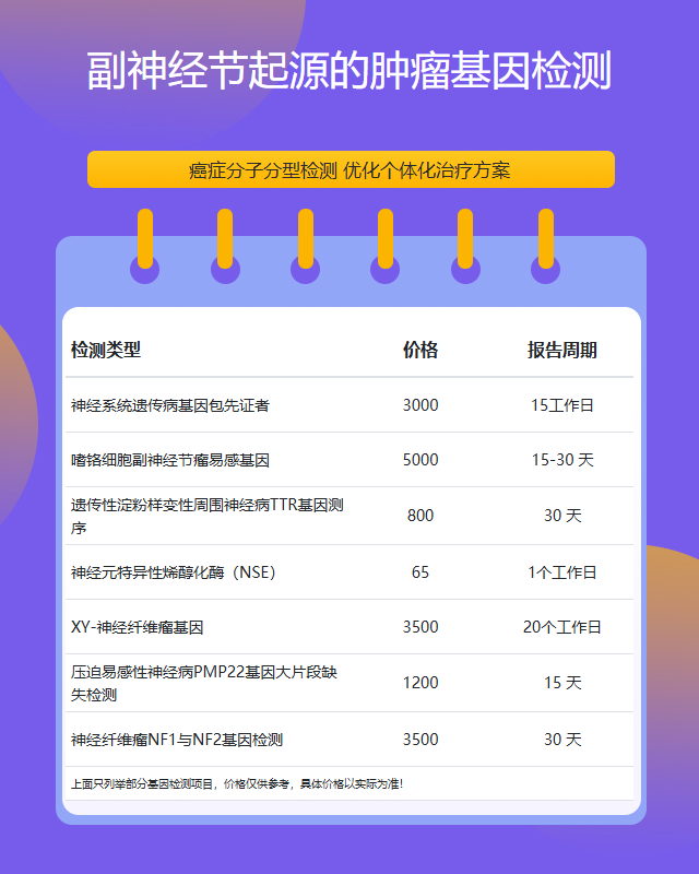 总之,运城地区副神经节起源肿瘤基因检测的价格受多种因素影响,患者应在专业医生指导下,根据自身病情和经济状况选择合适的检测方案。基因检测作为精准医疗的重要手段,其价值不仅体现在价格上,更在于为临床决策提供科学依据。