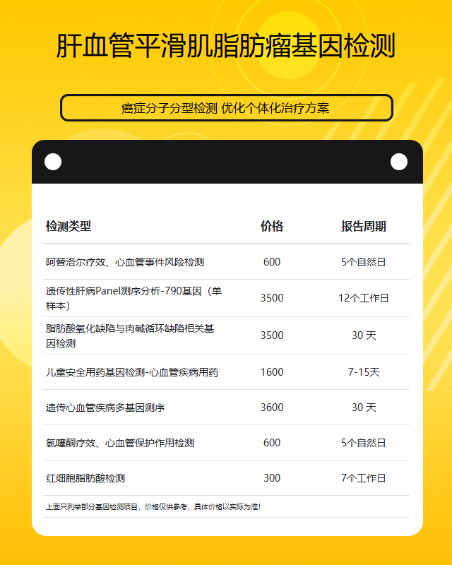 济南肝血管平滑肌脂肪瘤基因检测做一次大概多少钱,在探索生命奥秘、守护个体健康的旅程中,【济南基因检测】致力于为您提供精准、专业的基因检测服务。通过先进的生物技术,我们深入挖掘基因信息,为您量身定制健康管理方案,助力您深入了解自身遗传特征,预防潜在疾病风险,让健康生活从基因开始。下面针对“济南肝血管平滑肌脂肪瘤基因检测哪些方法”和“济南肝血管平滑肌脂肪瘤基因检测做一次大概多少钱”相关信息为大家做个详细的介绍,通过此文的介绍,大家可以更好的深入了解济南肝血管平滑肌脂肪瘤基因检测哪些方法这个问题。
