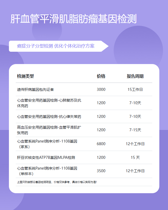宁德肝血管平滑肌脂肪瘤基因检测套餐参考推荐