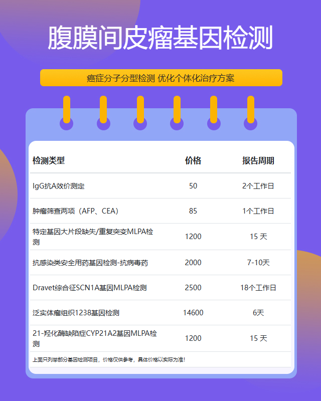 南通腹膜间皮瘤基因检测地址一览,南通基因检测,作为国内领先的基因科技服务机构,专注于为广大用户提供精准、高效的基因检测解决方案。我们以先进的检测技术、严谨的科学态度和贴心的服务理念,为用户解锁基因密码,助力健康生活。在这里,您可以深入了解自身遗传信息,为未来健康规划提供有力支持。南通基因检测,引领基因科技新篇章,共创健康未来。下面针对“南通腹膜间皮瘤基因检测筛查多久出结果”和“南通腹膜间皮瘤基因检测地址一览”相关信息为大家做个详细的介绍,通过此文的介绍,大家可以更好的深入了解南通腹膜间皮瘤基因检测筛查多久出结果这个问题。