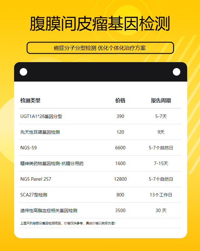 深圳合法腹膜间皮瘤基因检测名单汇总,深圳基因检测,作为国内领先的基因科技服务机构,专注于为广大用户提供精准、高效的基因检测解决方案。我们以先进的检测技术、严谨的科学态度和贴心的服务理念,为用户解锁基因密码,助力健康生活。在这里,您可以深入了解自身遗传信息,为未来健康规划提供有力支持。深圳基因检测,引领基因科技新篇章,共创健康未来。下面针对“深圳腹膜间皮瘤基因检测需要准备什么”和“深圳合法腹膜间皮瘤基因检测名单汇总”相关信息为大家做个详细的介绍,通过此文的介绍,大家可以更好的深入了解深圳腹膜间皮瘤基因检测需要准备什么这个问题。
