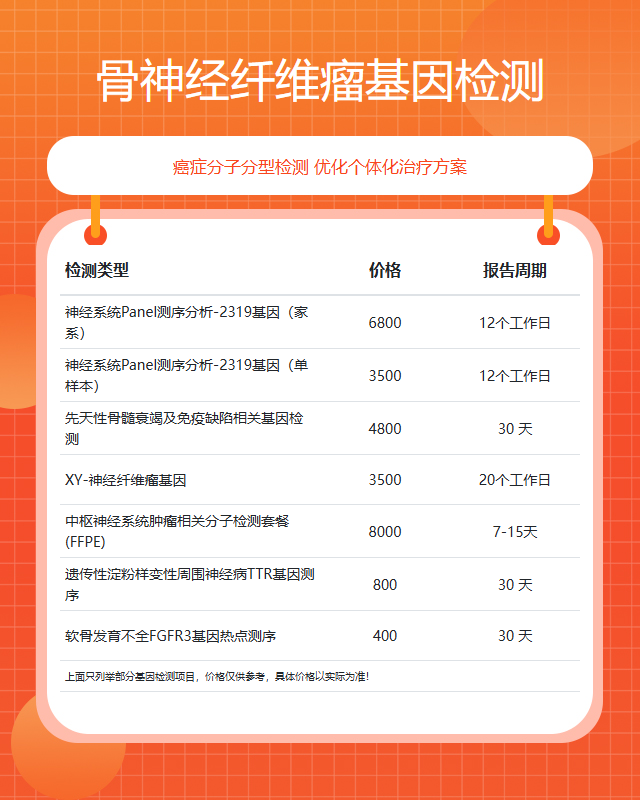 咨询范围:全外显子基因检测、癌症基因检测、安全用药基因检测、肿瘤基因检测、染色体异常基因检测、遗传疾病基因检测、易感基因检测、单基因检测、妇幼专项基因检测等,提供#骨神经纤维瘤# #混合瘤# #转移性骨肿瘤# #耳部肿瘤# #泛发性毛囊错构瘤# #肝血管平滑肌脂肪瘤# #骨血管瘤# #甲状腺瘤# #颈部血管瘤# #颞叶肿瘤# #软骨样汗管瘤# #神经鞘瘤# #十二指肠腺癌# #腺泡细胞癌# #小肠纤维瘤# #胰腺多肽瘤#等肿瘤基因检测综合业务咨询服务。