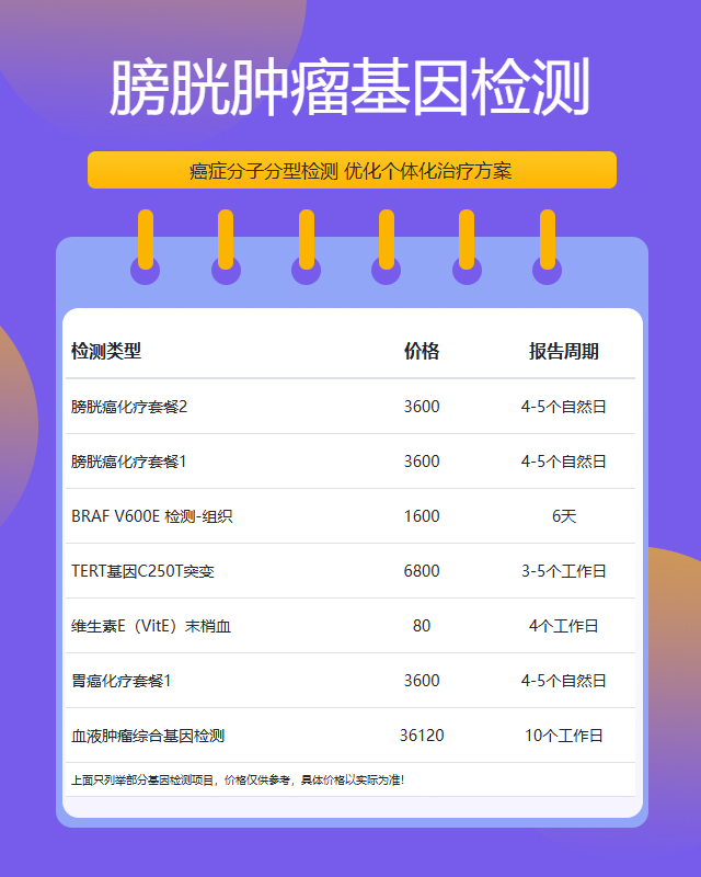 1. 检测项目选择:不同类型的膀胱肿瘤可能需要不同的基因检测套餐。建议在预约前与医生充分沟通,选择最适合的检测项目。