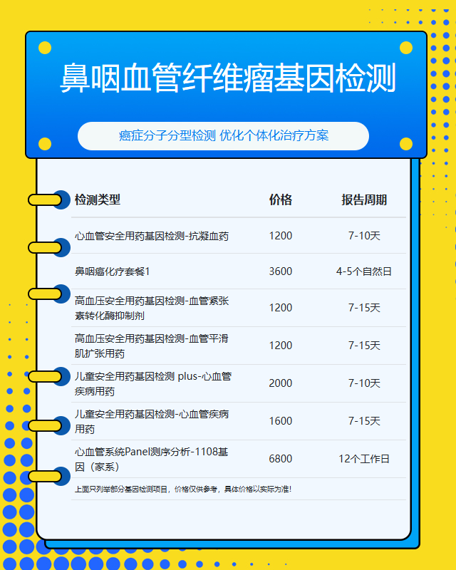 烟台鼻咽血管纤维瘤基因检测套餐参考推荐