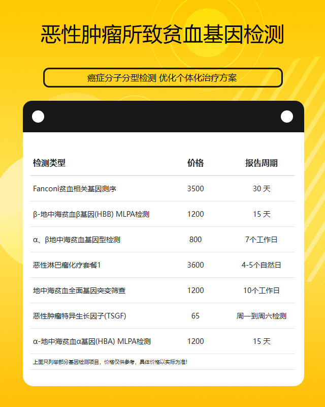 南京恶性肿瘤所致贫血基因检测套餐参考推荐