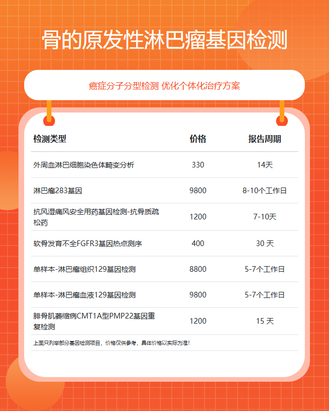 荆州骨的原发性淋巴瘤基因检测套餐参考推荐