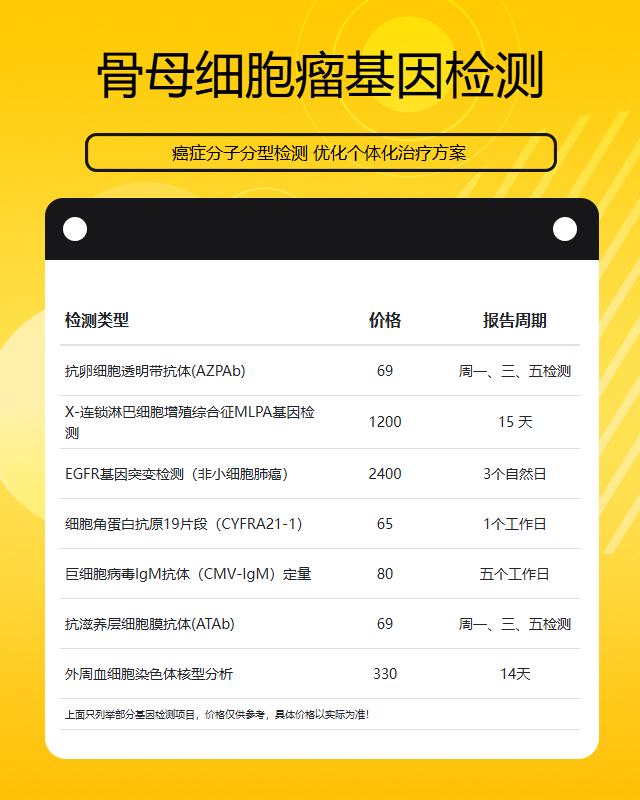 咨询范围:癌症基因检测、肿瘤基因检测、易感基因检测、单基因检测、全外显子基因检测、染色体异常基因检测、遗传疾病基因检测、妇幼专项基因检测、安全用药基因检测等,提供#骨母细胞瘤# #骨髓瘤# #横纹肌肉瘤# #胸腺癌# #非霍奇金淋巴瘤# #单发性毛鞘瘤# #骨的原发性淋巴瘤# #间充质软骨肉瘤# #绝经后子宫颈癌# #毛囊瘤# #皮脂腺癌# #神经鞘黏液瘤# #神经纤维瘤# #小儿颅内肿瘤# #牙瘤# #眼部肿瘤#等肿瘤基因检测综合业务咨询服务。