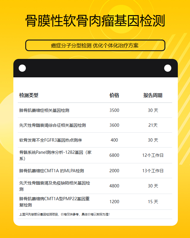 泉州骨膜性软骨肉瘤基因检测套餐参考推荐