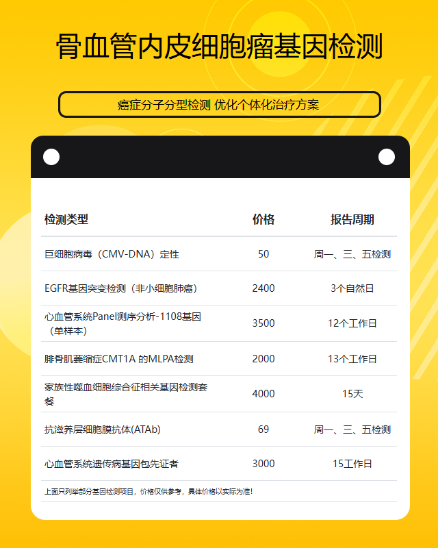 太原骨血管内皮细胞瘤基因检测套餐参考推荐