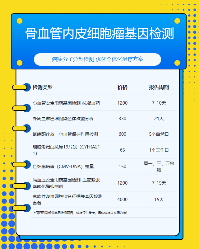 莆田骨血管内皮细胞瘤基因检测套餐参考推荐