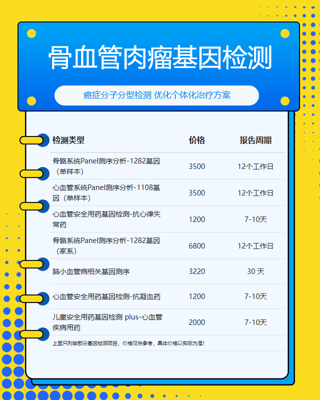 合肥骨血管肉瘤基因检测套餐参考推荐