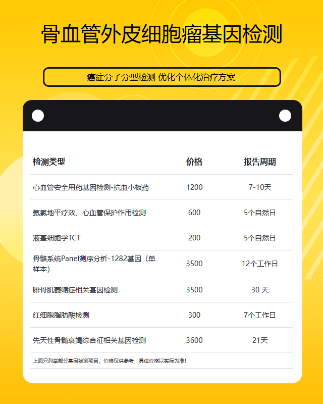 淄博骨血管外皮细胞瘤基因检测套餐参考推荐