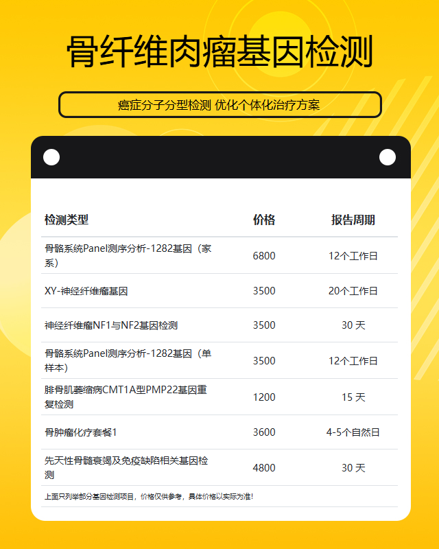 南阳骨纤维肉瘤基因检测套餐参考推荐
