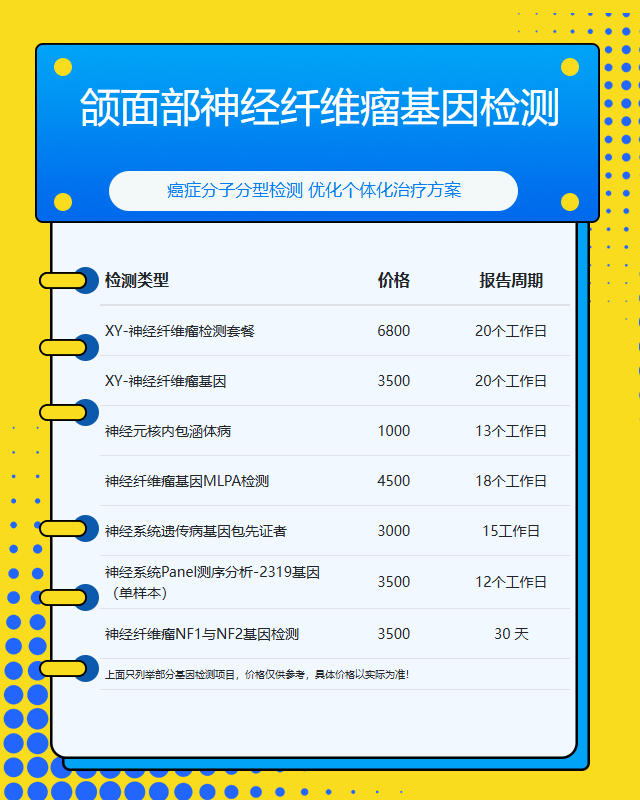 总之,太原颌面部神经纤维瘤基因检测的收费受多种因素影响,患者应根据自身需求和预算做出合理选择。建议在检测前充分了解项目内容,并咨询专业医生的意见。