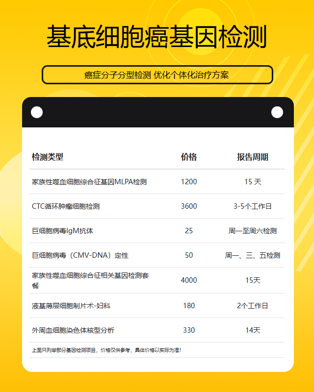 九江基底细胞癌基因检测套餐参考推荐