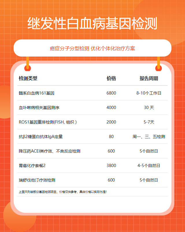 徐州继发性白血病基因检测套餐参考推荐