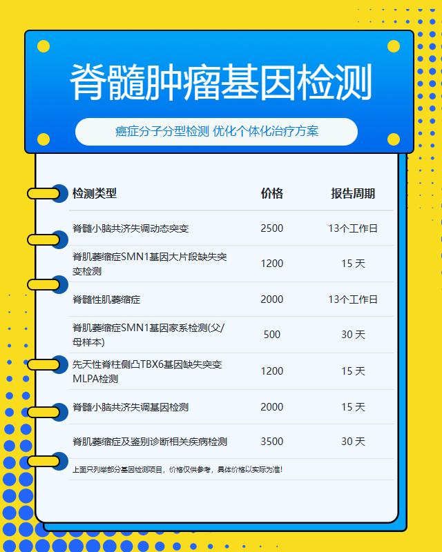 中山正规做脊髓肿瘤基因检测医院名单,在探索生命奥秘的征途上,中山基因检测以其卓越的技术实力和专业服务,为大众开启了精准健康的全新篇章。作为区域内领先的基因检测机构,中山基因检测致力于通过先进的分子生物学手段,为用户提供个性化的健康管理和疾病预防方案,让每个人都能享受到科技带来的健康福祉。下面针对“中山脊髓肿瘤基因检测有哪些”和“中山正规做脊髓肿瘤基因检测医院名单”相关信息为大家做个详细的介绍,通过此文的介绍,大家可以更好的深入了解中山脊髓肿瘤基因检测有哪些这个问题。