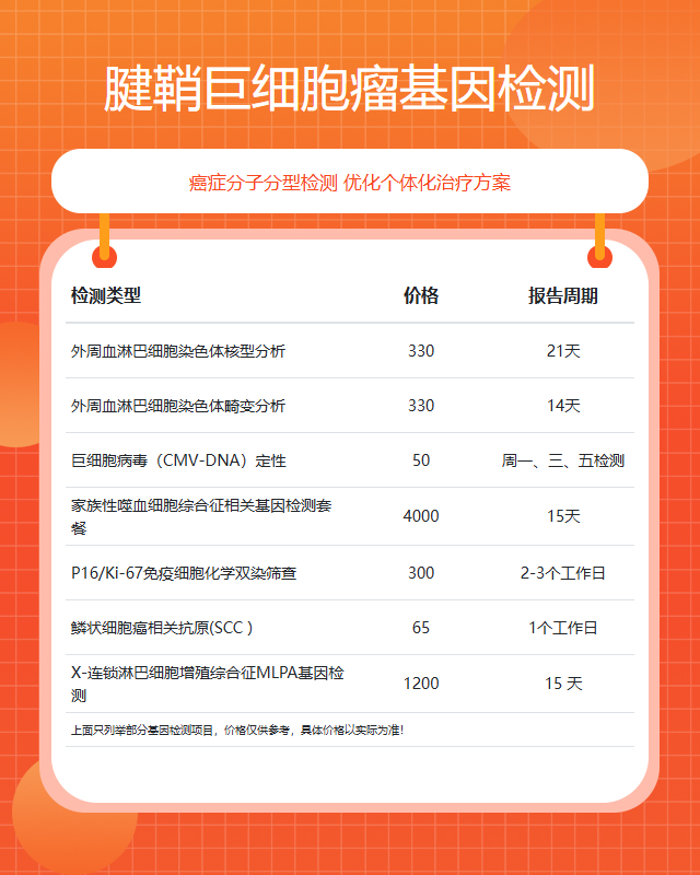 蚌埠腱鞘巨细胞瘤基因检测套餐参考推荐