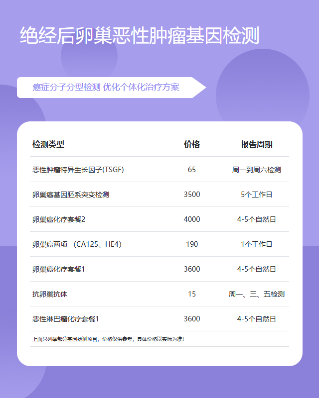 金华绝经后卵巢恶性肿瘤基因检测套餐参考推荐