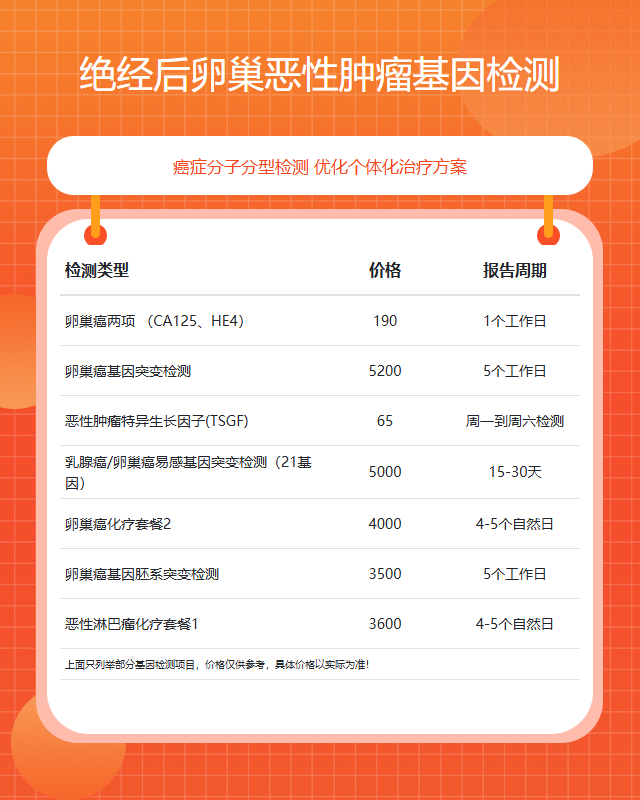 沈阳绝经后卵巢恶性肿瘤基因检测套餐参考推荐