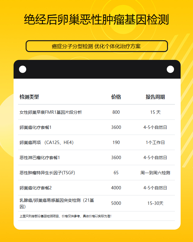 南宁绝经后卵巢恶性肿瘤基因检测套餐参考推荐