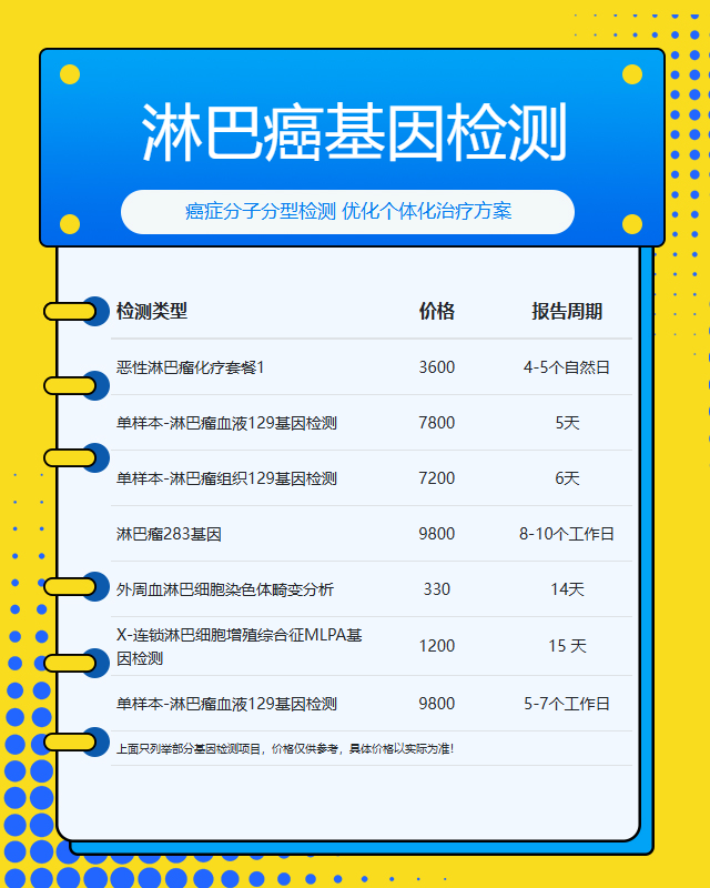 2. 小Panel检测(10-50个基因):涵盖淋巴癌相关基因组合,收费约3000-6000元