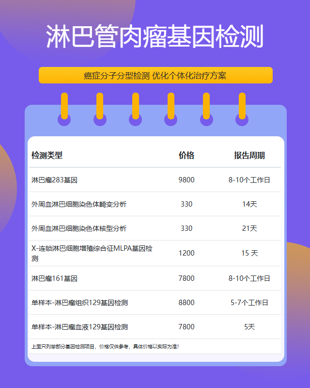 从检测技术角度来看,目前常见的淋巴管肉瘤相关基因检测包括PCR技术、荧光原位杂交(FISH)技术和二代测序技术等。不同技术的检测成本和检测范围存在差异,这也会直接影响最终的价格。一般来说,检测的基因数量越多、技术越先进,费用就会相应提高。