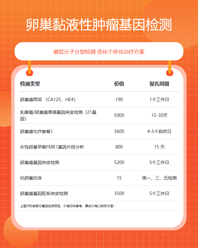 肇庆卵巢黏液性肿瘤基因检测套餐参考推荐