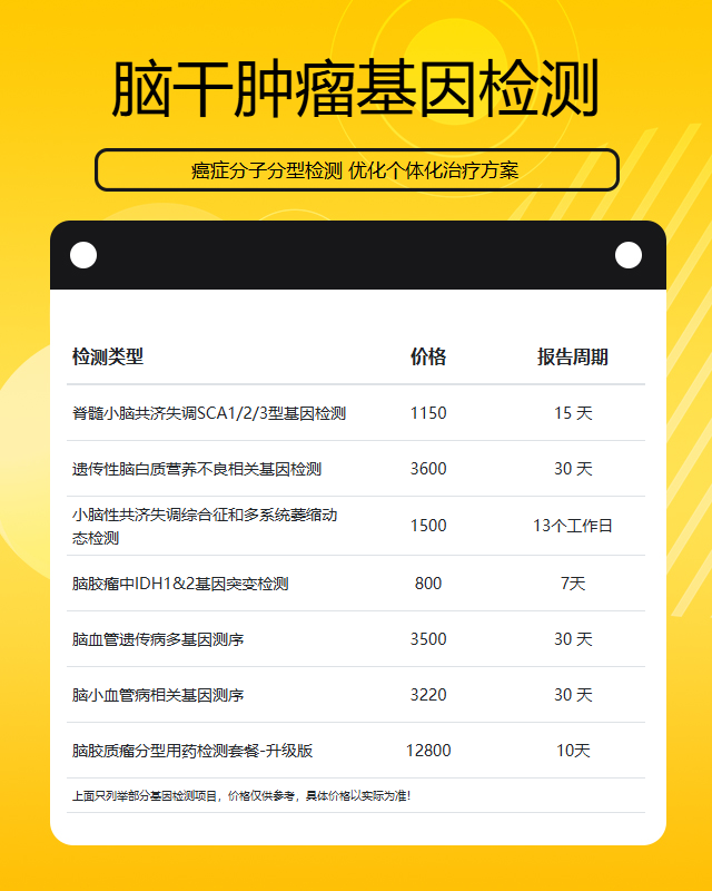 贵阳脑干肿瘤基因检测套餐参考推荐